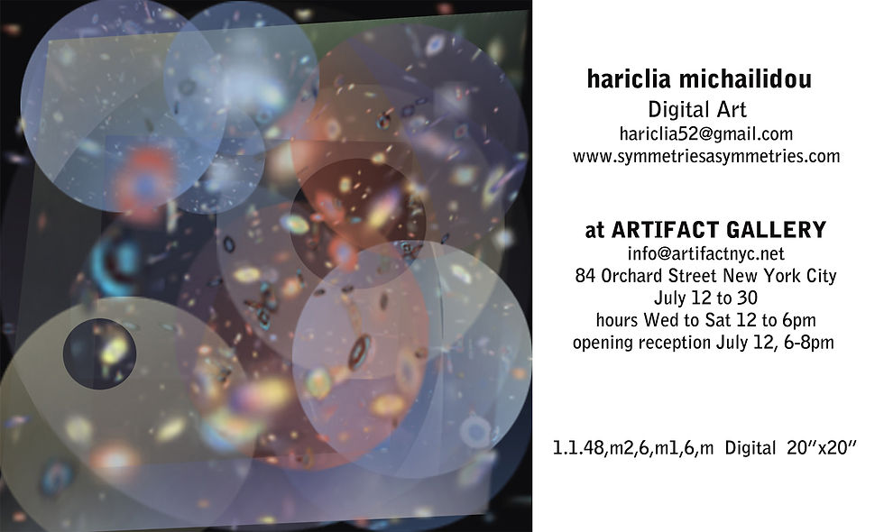 The Poetics of Space -the Art Exhibition of Hariclia Michailidou July 12-30 New Yorkdavidsmith208Jun 28, 20171 min readThe Poetics of Space The reception is July 12 at 6pm to 8pmAt Artifact Gallery 84 Orchard Street NYC Artifact Gallery Artifact Gallery Facebook